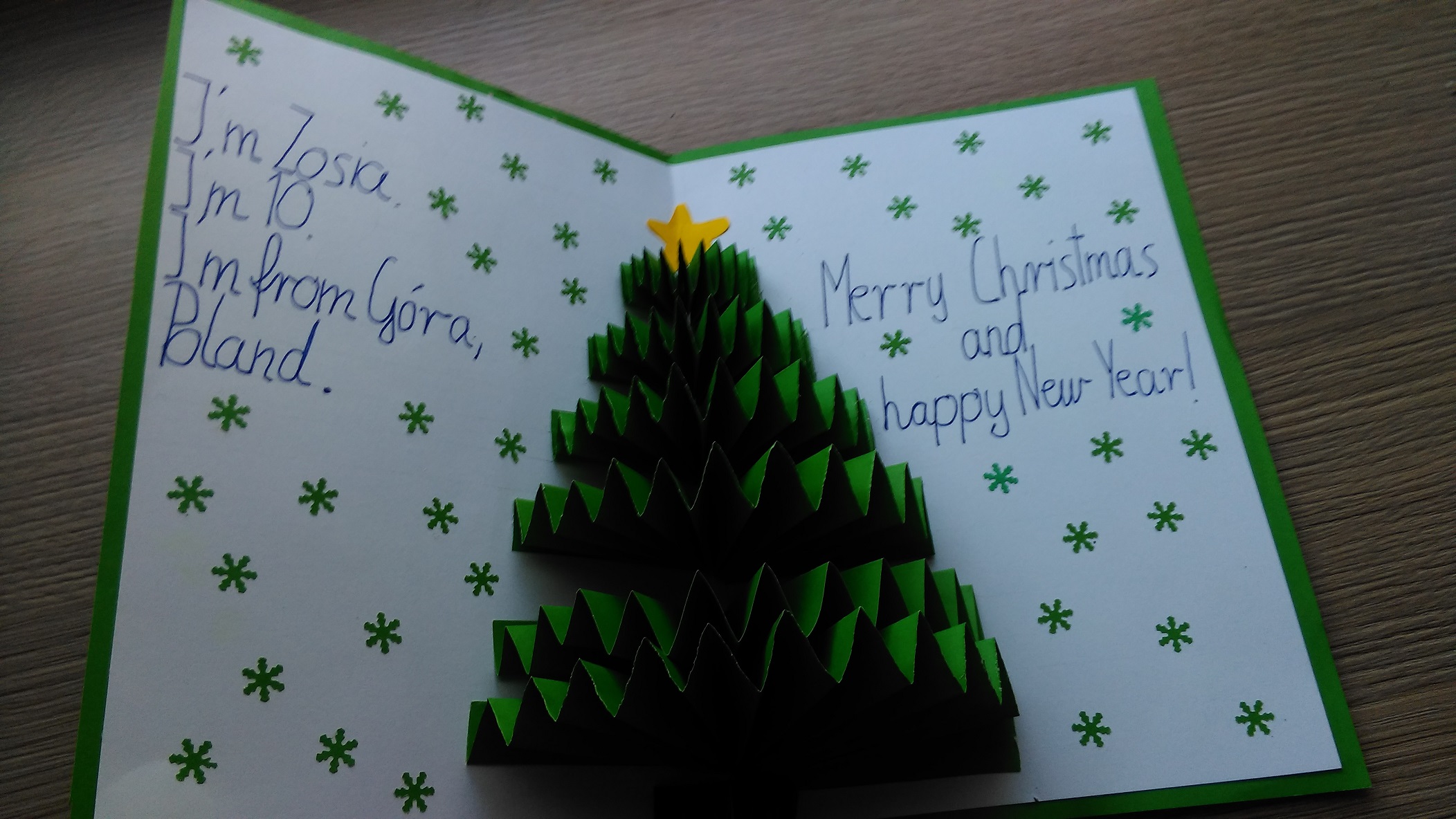 Klasy IV i V uczestniczyły w projekcie e-twinning Christmas Cards Exchange, który polegał na wymianie kartek bożonarodzeniowych. Mimo, iż projekt się jeszcze nie zakończył, gdyż nie doszły do nas jeszcze wszystkie kartki, zapraszamy do obejrzenia zdjęć prześlicznych kartek naszych uczniów. Wysłaliśmy je do Włoch, Hiszpanii, Irlandii Północnej, Turcji, Bułgarii , Francji i Grecji.